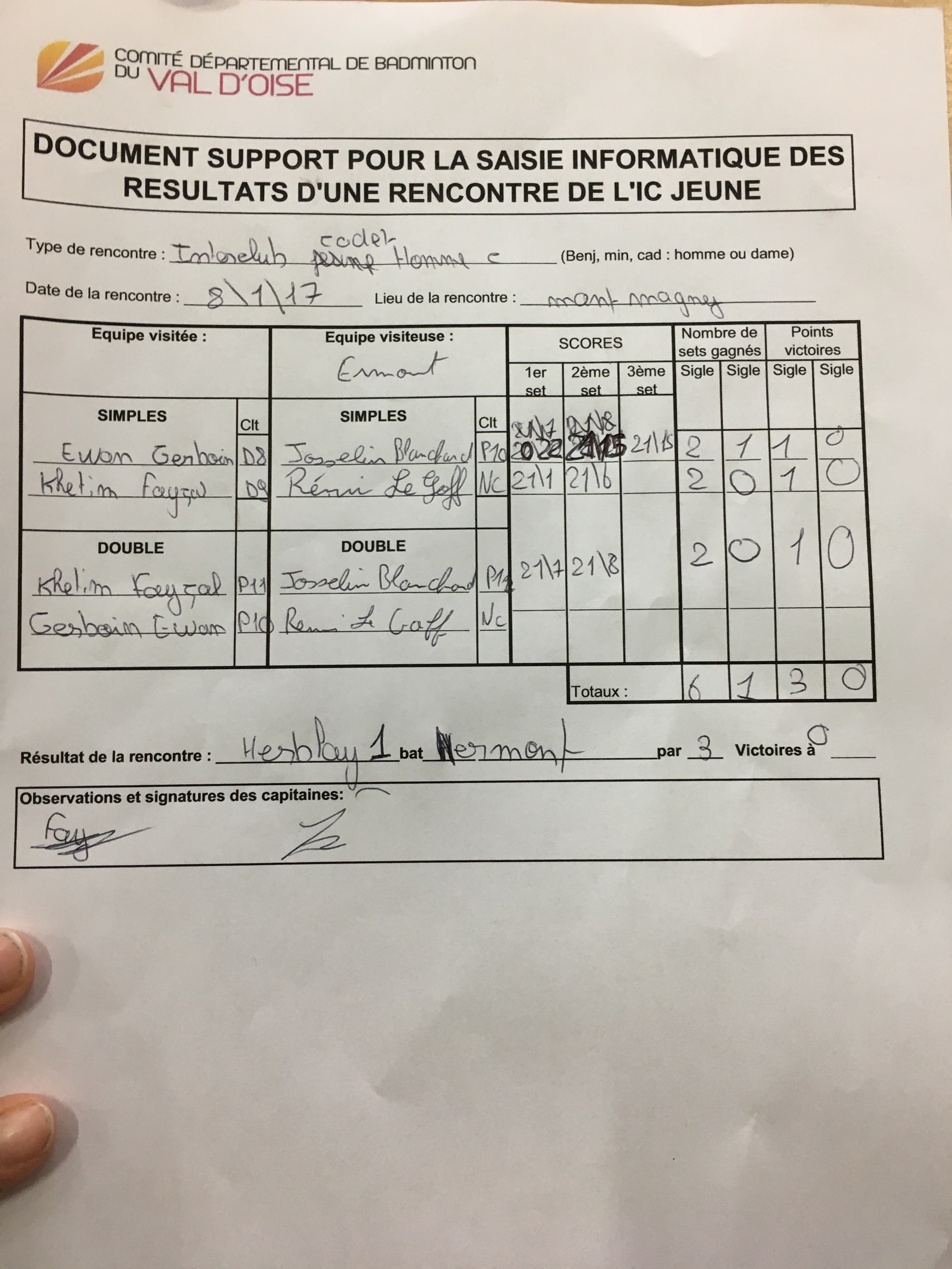 2016-2017 ICJ Cadets / Contre Ermont Cadets