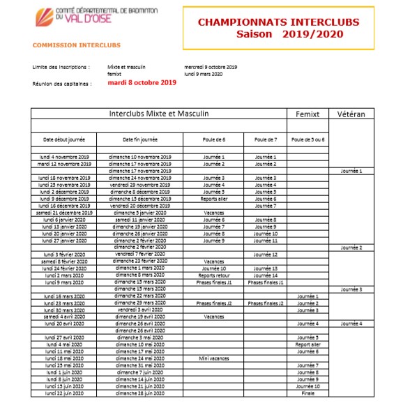 calendier IC 2019 2020